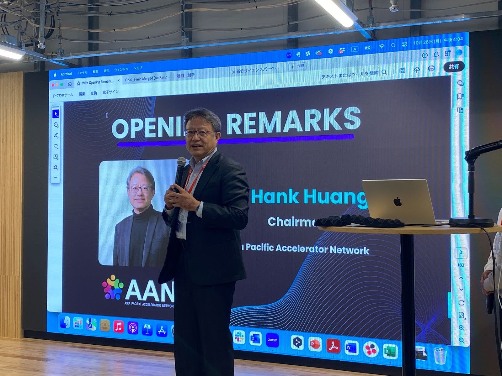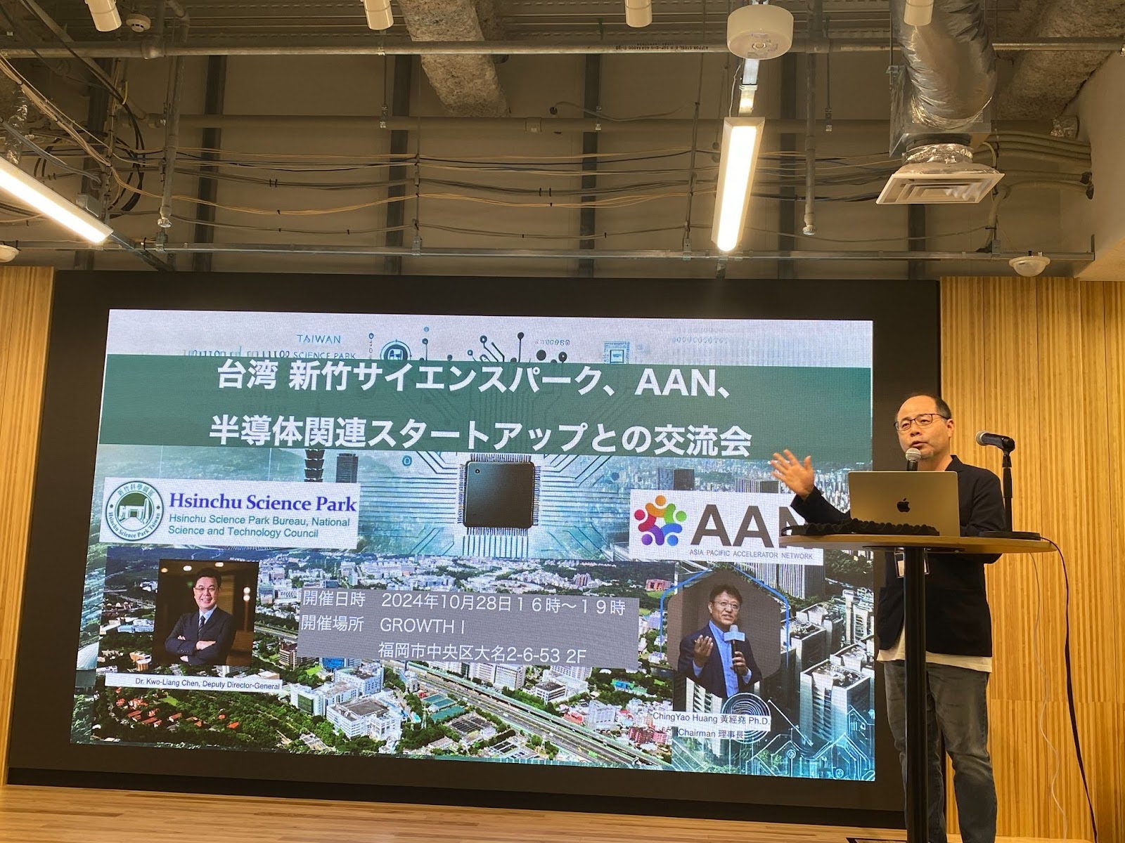 ▲Huang Jingyao, Chairman of the Asia Pacific Accelerator Network, and Lin Bo-heng, Secretary-General, introduce Taiwan’s Hsinchu Science Park and incubation programs to the Japanese participants