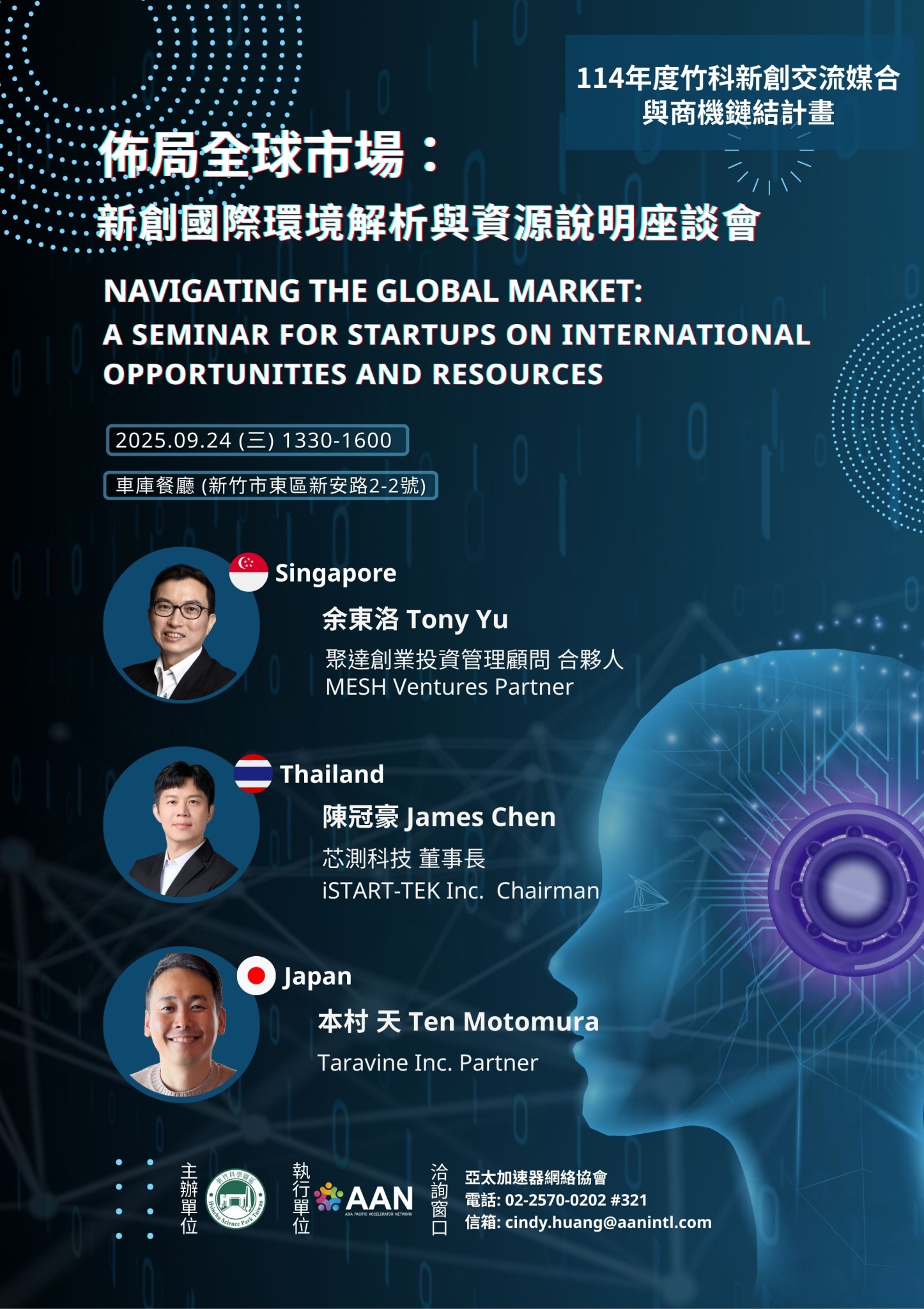 The forum will focus on the international startup environment and market trends, covering the latest industry observations, entrepreneurial resources and support systems across different countries, as well as go-to-market strategies and case studies. Three distinguished professionals from Singapore, Thailand, and Japan will share their expertise—an opportunity not to be missed!