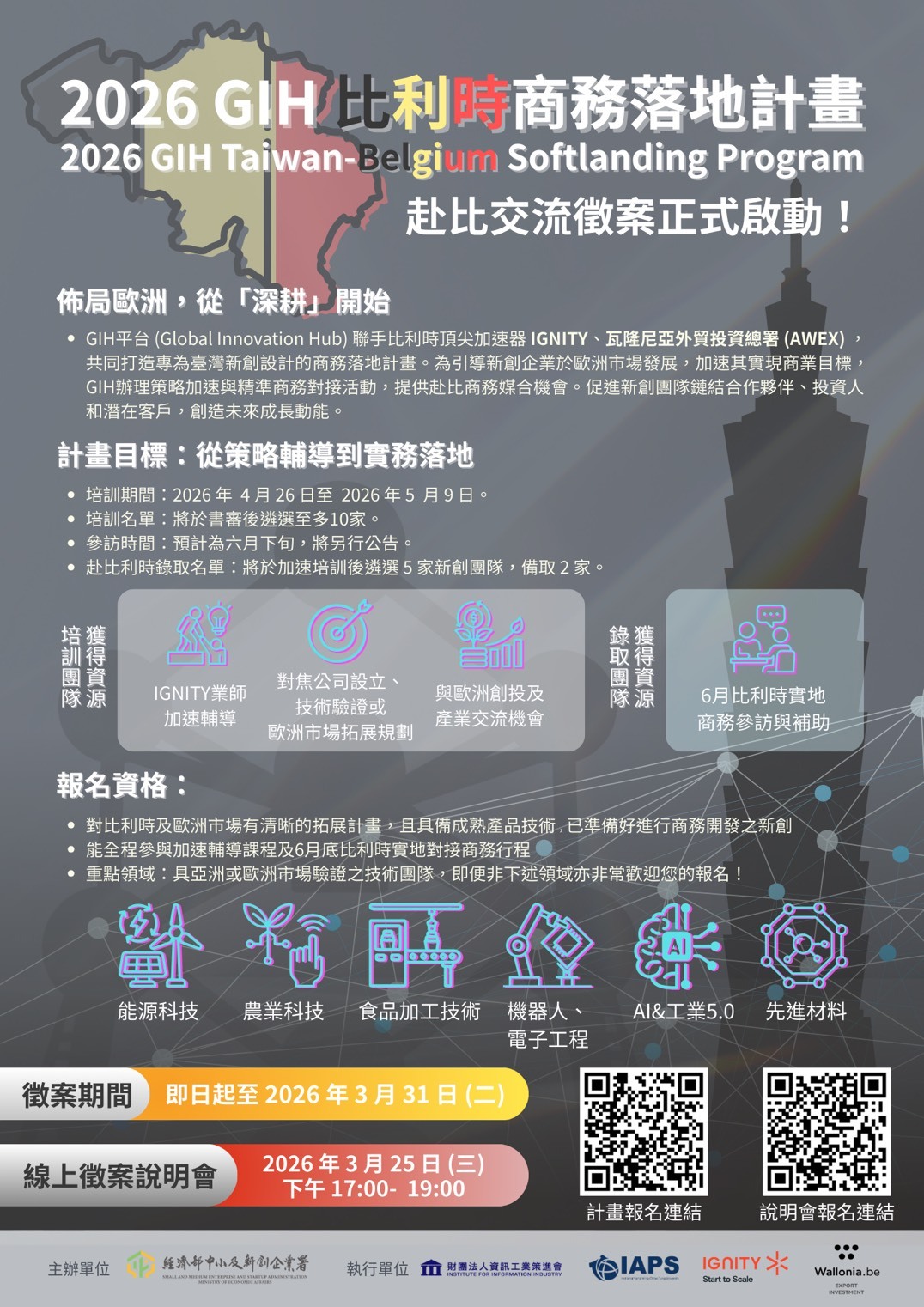 GIH 平台攜手比利時加速器 IGNITY、瓦隆尼亞外貿投資總署(AWEX) 與 比利時台北辦事處,正式啟動 「GIH 比利時商務落地計畫」!